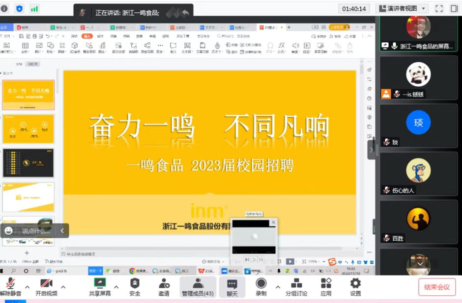 本次线上直播带岗招聘宣讲的企业主要有:西安好利来食品有限公司、江苏小厨娘餐饮管理有限公司、郑州地盘披萨餐饮管理有限公司、郑州肯德基有限公司、浙江一鸣食品股份有限公司、福建北记食品有限公司。企业人力资源专员通过宣传片播放、PPT演示等方式,主要从公司概况、未来发展前景、岗位人员需求,福利待遇、晋升前景等方面进行讲解。同时与参会毕业生进行了在线答疑解惑,对毕业生关心的问题做了细致解答。