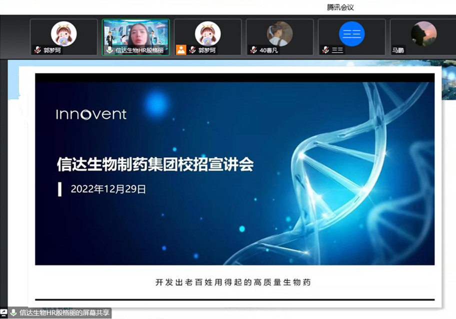 为进一步落实关于2023届河南省普通高校毕业生就业创业工作网络视频会议精神,切实为毕业生提供高质量的就业服务,12月29日下午,管理学院举办信达生物制药集团专场线上招聘会。
