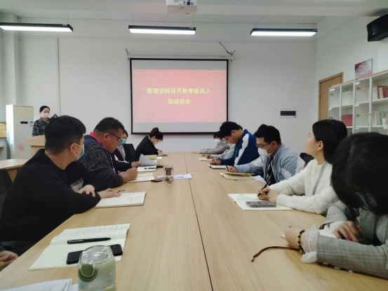 为做好2023年高校大学生应征入伍工作,10月11日下午,管理学院在2号楼305召开2023年秋季征兵工作动员会,会议由学院党委书记职正路主持,行政秘书许广庆、征兵工作负责人及全体辅导员参会。