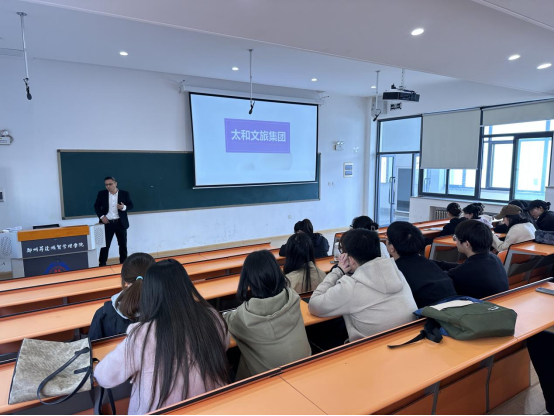 2024年11月1日上午,河南太和文旅集团有限公司在教学楼2号楼208室为旅游管理与酒店管理专业定制的招聘宣讲盛会。此次宣讲会为即将步入社会的毕业生们搭建一座通往理想职业的桥梁。