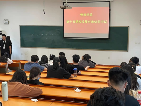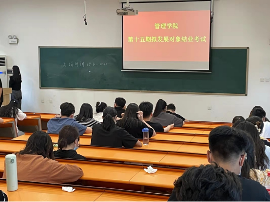 征程正未有穷期,不待扬鞭自奋蹄。为把好党员发展质量关口,检验发展对象党课学习成效,培养能力作风优秀的新时代党员。管理学院于2022年5月3日18:30在2号楼208开展了“第十五期拟发展对象结业考试”。参与本次考试的为管理学院第十五期全体拟发展对象。