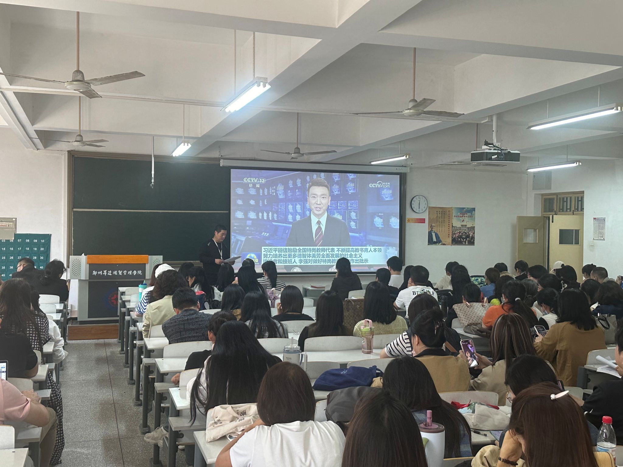 在第41个教师节前夕,习近平总书记给全国特岗教师代表的回信,如春风化雨,为教育工作者带来了温暖与指引。2025年9月25日下午,外国语学院在资讯楼315召开全院大会,组织全体教职工集体学习这一重要精神。