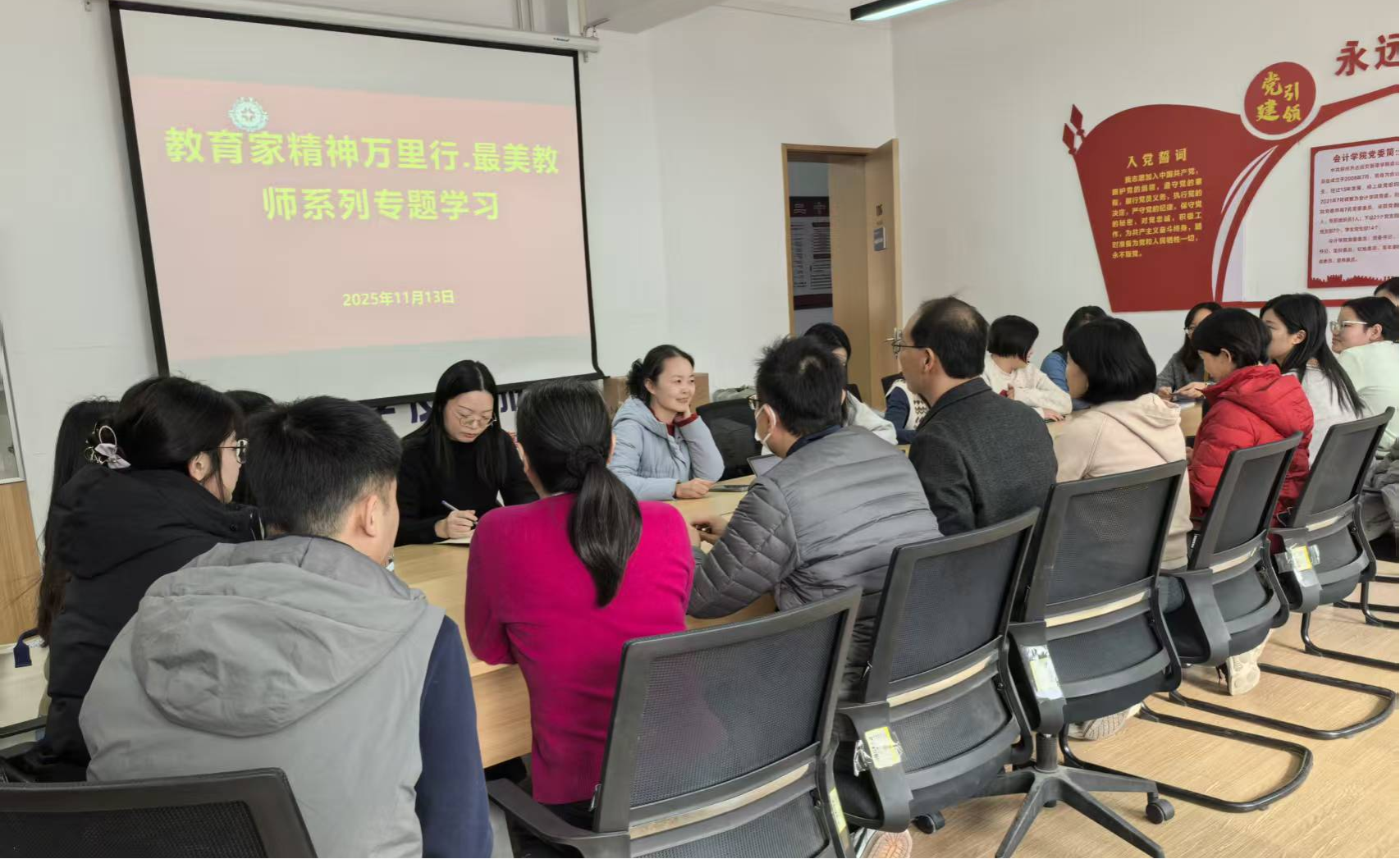 为深入贯彻落实党的教育方针,弘扬教育家精神,强化师德师风建设,加强新时代高水平教师队伍建设。会计学院财务管理教研室于2025年11月13日在教学四号楼116开展“教育家精神万里行·最美教师系列”专题学习交流会,会议由教研室主任何保国主持,财务管理教研室全体教师参加。