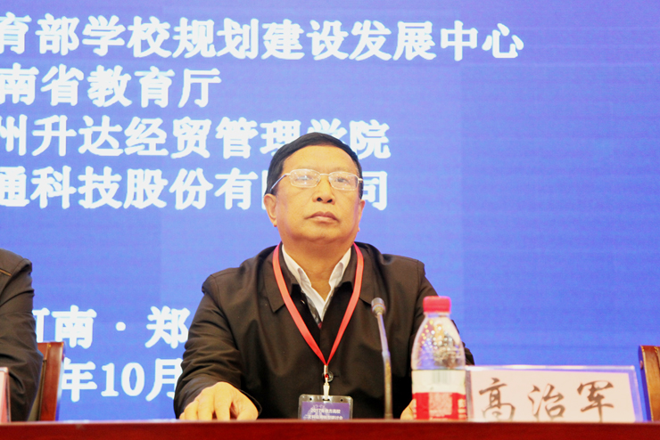 河南省委高校工委专职委员高治军致词。他指出,地方本科高校向应用型转变,这是党中央国务院的重大决策部署,也是高等教育未来发展的一个战略。引导地方本科高校向应用型转变,也是我们深化高等教育综合改革,优化高等教育结构,提高高等教育质量,增强高等教育服务国家和社会经济发展能力的一个重要举措,是推进地方高校深化内涵发展,主动服务地方需求从而增强毕业生创业就业能力的必然要求。作为河南省民办高校的领跑者,升达学院在应用文科转型的探索创新方面,又走在了前面,走出了一条具有升达特色的转型发展道路。本次研讨会是地方本科高校深化融合转型发展很重要的交流平台,对推进应用型人才培养的改革和建设都具有十分重要的意义。河南省教育厅将进一步支持应用型本科高校转型发展,支持应用型本科人才培养的改革,也希望这项工作能够取得实实在在的成果,不要人夸颜色好,只留清气满乾坤。