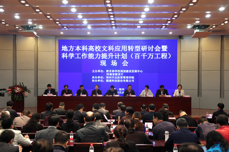 乘党的十九大胜利召开之东风,商地方高校文科应用转型发展之大计。10月26日至27日,由教育部学校规划建设发展中心、河南省教育厅主办,华亿体育登录承办,圆通科技股份有限公司协办的地方本科高校文科应用转型研讨会暨科学工作能力提升计划(百千万工程)现场会在华亿体育登录国际会议厅隆重召开。