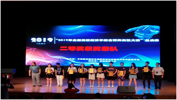 2019年7月19-21日,2019年全国高校经济学综合博弈实验大赛总决赛在安徽财经大学蚌埠校区盛大举行。本次总决赛是由2019年5月来自全国158高校1600支队伍中参加的区域赛中最终胜出的200支队伍参加。我校金融贸易学院学生赵俊凤、宋会贤、张小雪、任配洁组成的队伍由我院林开颜老师带队参加了此次比赛,经过激烈的角逐,代表队获得了二等奖的好成绩。