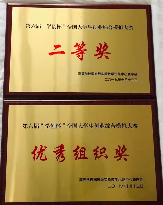 2019年10月11日至13日,第七届全国高校创新创业实验教学研讨会暨第六届“学创杯”全国大学生创业综合模拟大赛在中国保定河北金融学院顺利开展,我校金融贸易学院有王宇鹏实验室主任、张聚伟老师带领金贸学生张天培、吕飘飘、刘艳三人参加了比赛,并在比赛中获得全国二等奖和优秀组织奖。