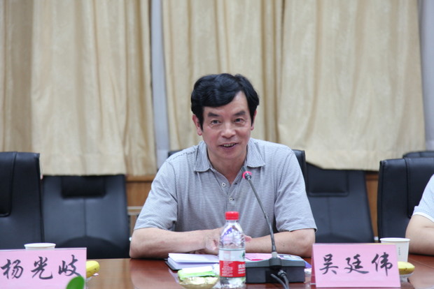 郑州工业应用技术学院党委书记吴廷伟讲话。他对两校的学习交流提出一个建设性的意见,即升达学院与郑州工业应用技术学院,两校建立长期的学习交流机制,进行无限沟通,采取取长补短,共享资源等办法,促进两校共同快速发展。这一建议得到两校领导一致赞同。