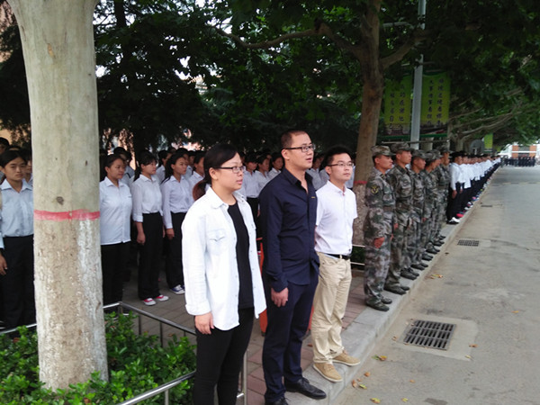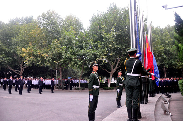 2015级新生国旗教育活动于9月9日清晨隆重举行。学务长张现水、院团委书记秦旻出席了活动,学务处、院团委、行政秘书及各系相关老师和5800多名2015级新生参加了此次活动。