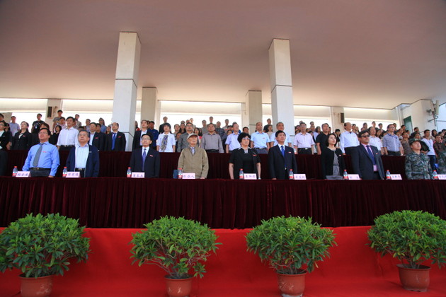 在嘹亮的《国歌》声中,分列式队列表演开始,全院10个系6000多名新生组成65个方队,朝气蓬勃、英姿飒爽地正步走过主席台,摆臂有力,步伐整齐,意气风发,豪情万丈,显示了当代大学生的风采与热情。随后,信工系新生与教官们进行军事技能表演,劈掌顿足,龙行虎步,吼声震天,气势磅礴,一招一式博得师生阵阵喝彩。接着,新生集体背诵升达校训、精神与格言,国旗班同学代表全体新生宣誓。嘹亮的声音划破天际,表达了升达学子奋发读书,立志成才,报效祖国的雄心。