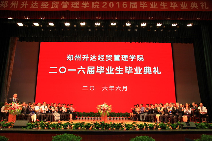 一朝师生情,终生缅于怀;学子闯天下,母校候佳音。6月1日上午,我院2016届毕业生毕业典礼在思源会馆隆重举行。出席典礼的嘉宾有:《中国教育报》河南记者站副站长、我院客座教授陈强,升达全国校友会会长、升达邂逅时光咖啡馆馆主袁宁,河南一诺企业董事长、升达郑州校友会会长孙攀峰。在主席台就坐的我校领导有:董事长王淑芳女士、院长郭爱先教授、院党委书记张德伟、常务副院长崔慕岳教授、党委副书记戎庭银,副院长张洁、张金安,执行董事王新奇先生,副院长段丰乐、张欣。以及各部门主管、系党总支书记、学院教师代表、2016届毕业生代表2000多人参加了毕业典礼。典礼仪式由院办主任朱永恒主持。