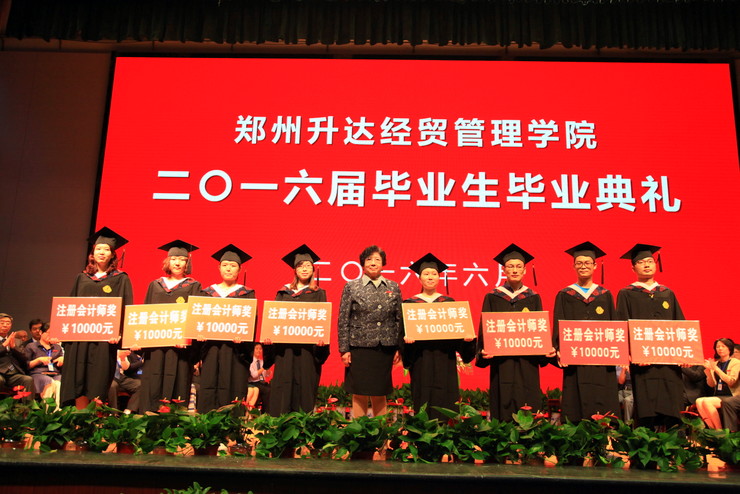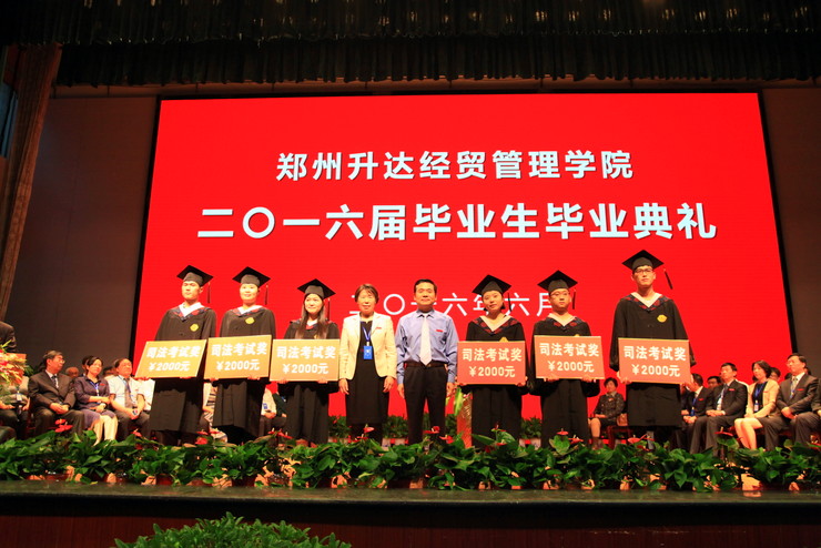 随后,与会校领导为获得学业成绩第一名、校级优秀毕业生、省级优秀毕业生、考取硕士研究生、通过司法考试、考取注册会计师代表颁发证书、奖品或奖金。
