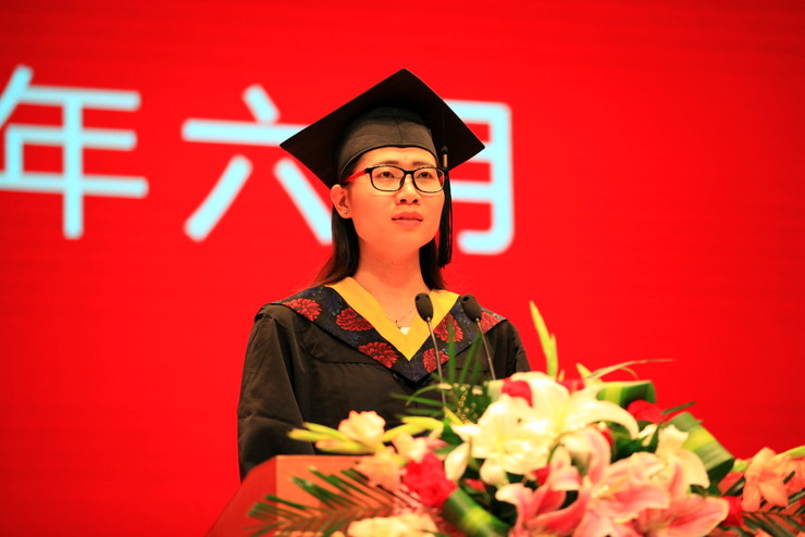 在校生代表牛森发言,他代表全体在校生,向已经圆满完成学业、即将走出校园、踏上人生新的征程的学长学姐们表示最热烈的祝贺和最诚挚的祝福,并表示接力棒已经握好,会处处以学长学姐为榜样,刻苦学习,全面发展,为了母校的辉煌贡献力量。