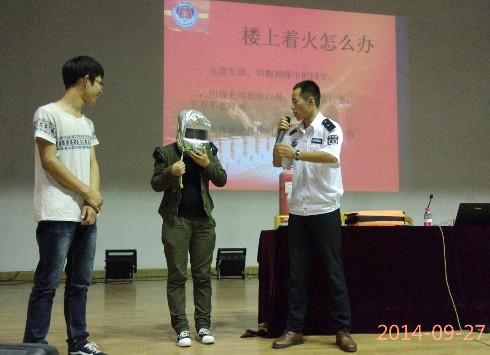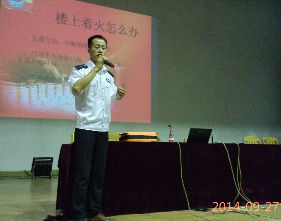 根据学院工作安排,学务处邀请郑州市公安消防支队宣讲团赵艳斌教员于9月27日在思源会馆为我院2014级新生作了两场消防安全知识专题讲座,各系行政秘书、新生班辅导员和5500余名新生参加了此次报告会。