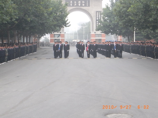 9月27日上午,我院在运动场隆重举行了2010级新生军训汇演暨开学典礼, 1452名普通本科新生分作27个方队,接受了创办人的检阅,汇报了自己的训练成果,2010级新生军训任务圆满完成。
