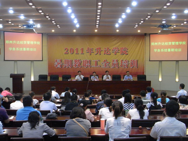 院长崔慕岳教授在动员大会上发表了重要讲话,向大家介绍了我院暑期教职工全员培训的基本情况、意义和要求。崔院长指出,学院转设成功后,全院教职工应努力做好两件事,第一要制定未来的建设规划,明确学院建设的任务、目标;第二要组织全院教职工培训,统一思想认识,凝心聚力,把学院规划落实好;学生工作是学院的重要工作,学生工作人员要把学习上级的有关规定与学习创办人的办学思想结合起来,准确把握创办人的 “三三三”制办学要点,要特别明确 “三心”是出发点,爱心是关键,“三严”是方法和手段,“三特色”是目标。崔院长还结合90后的学生特点对辅导员提出了希望和要求,希望辅导员多读书,有计划地读书,多学习所带学生所学专业的知识,以加强对学生的指导,努力提高学识魅力和人格魅力;学习胡锦涛总书记的七一讲话,正确理解“发展是硬道理,稳定是硬任务”的深刻内涵,做好本职工作,确保学院的安全稳定;辅导员要廉洁自律,为人师表,绝不允许任何人以权谋私。如果有人违反学院规定,在学生身上谋取私利,一经查实,严肃处理,绝不姑息。