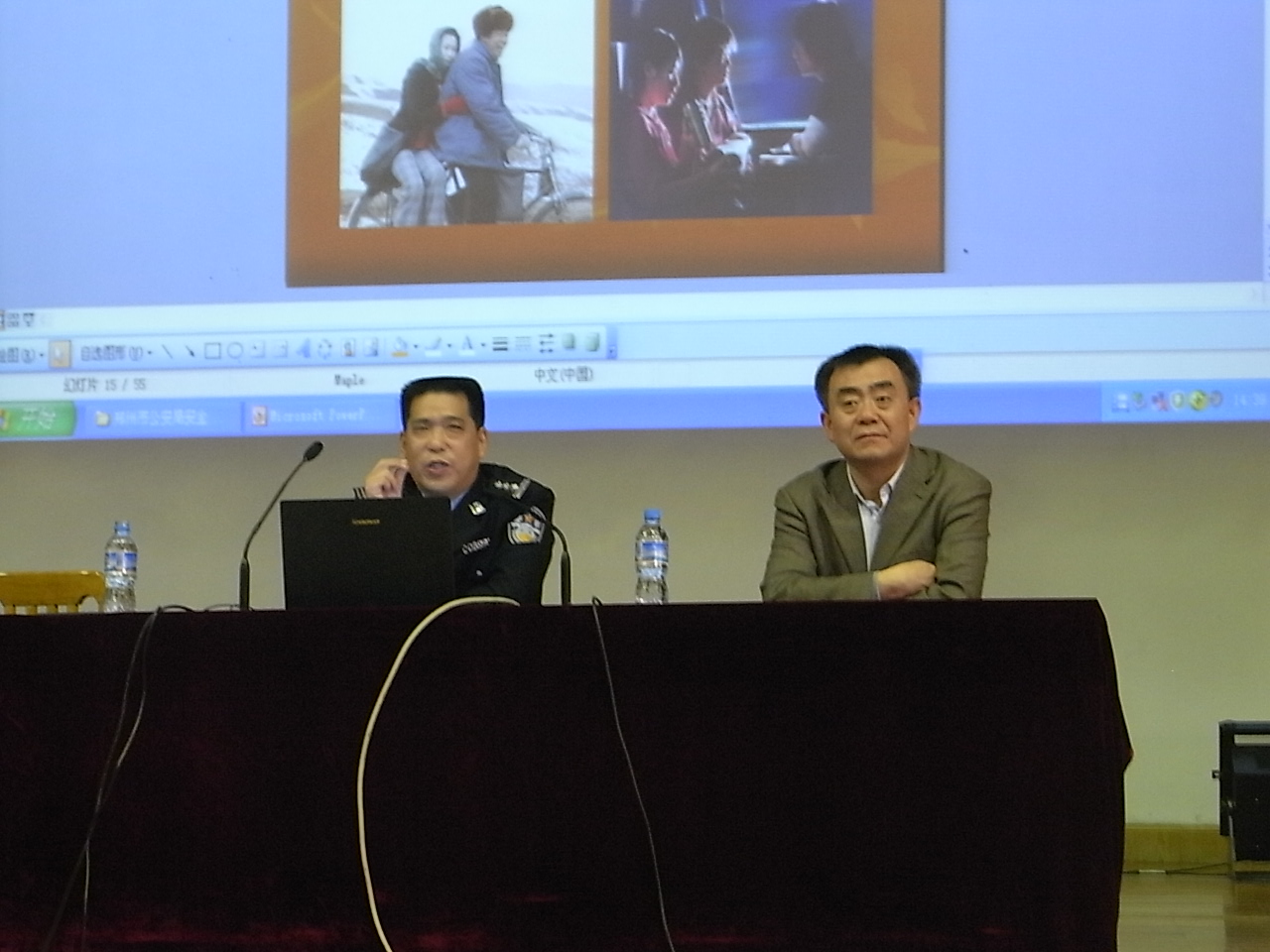 10月20日下午,我院邀请郑州市公安局便衣警察支队田国辉副支队长在思源会馆作了“安全防范进校园”主题报告,各系行政秘书、辅导员、总务处保卫科同仁、教学楼、宿舍楼管理员和2011级新生两千余人参加了报告。