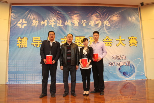 在决赛中,6名老师分别围绕自己的班会主题和同学们探讨了考研的心路历程、如何掌握身体语言、人生追求、人生规划、如何正确认识大学等和学生养成教育、素质培养相关的问题。他们的班会主题鲜明、观点正确、内容翔实,PPT制作精美,紧密联系学生和班级实际,符合学生的身心特征和思想认识水平,具有一定的说服力和表现力,赢得了现场观众的阵阵掌声。相关系的党政领导,分别对6位辅导员的主题班会进行了现场点评,既肯定了成绩,也指出了不足。最后经过7名评委的评定,文法系郭青梅荣获一等奖,资讯系李磊、外语系王娟荣获二等奖,国贸系丁玥、郭晓林和企管系许广庆荣获三等奖,另有其他系的10名辅导员获得优秀奖。