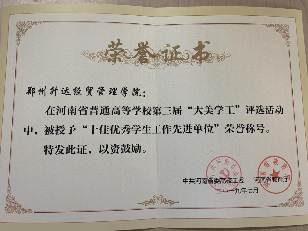 近年来,省教育厅为深入学习贯彻习近平新时代中国特色社会主义思想,贯彻落实党的十九大精神和全国、全省教育大会精神,落实立德树人根本任务,积极践行社会主义核心价值观,不断丰富高校学生工作内涵,在全省高校中开展了“大美学工”评选活动和校园文化建设优秀成果评选活动。我校积极响应教育厅号召,认真准备、报送。经教育厅网络推介、专家评审,我校学生工作和校园文化建设得到教育厅充分肯定,分别获得最高褒奖和优异成绩。