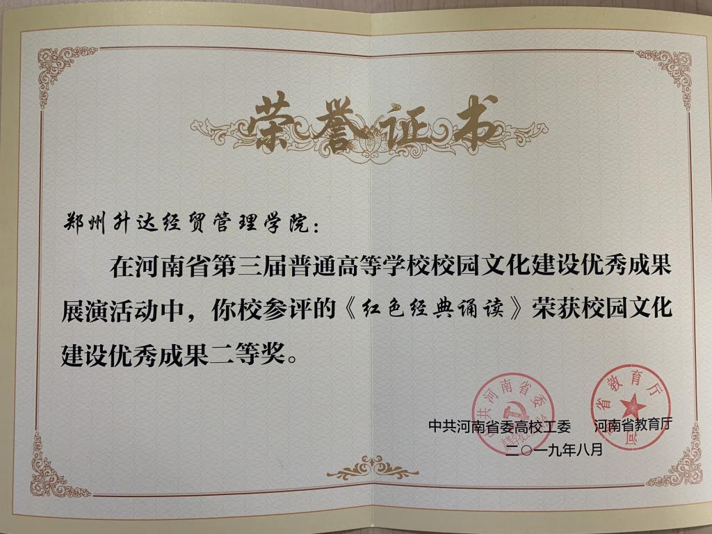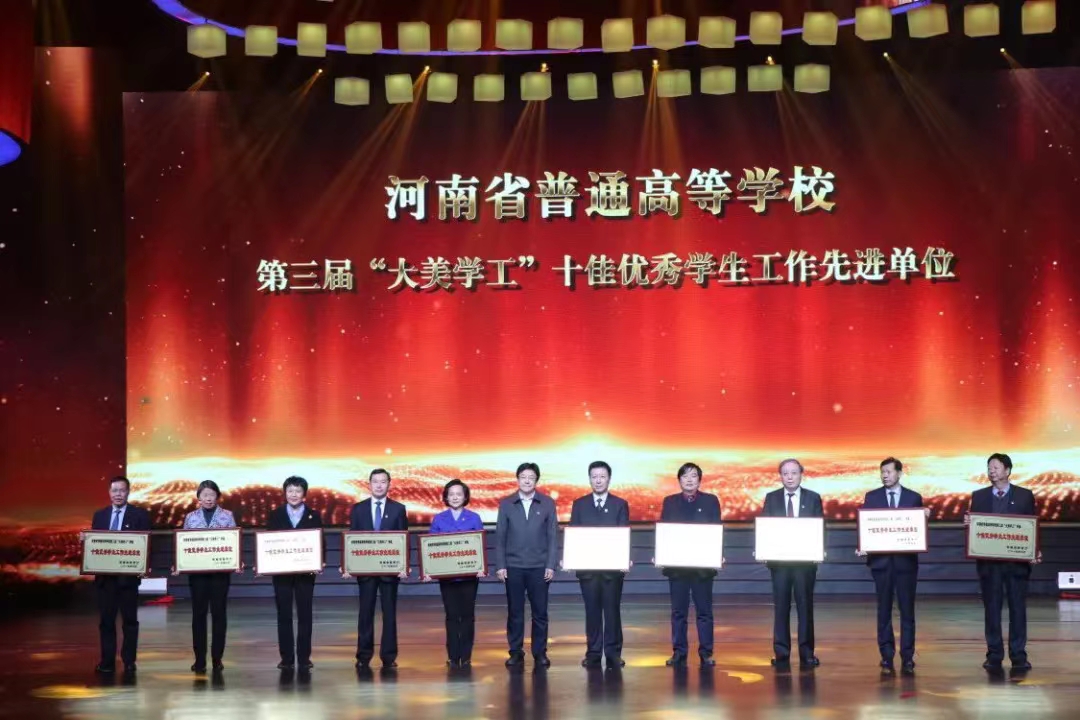 12月3日晚,郭爱先校长、张金安副校长到新乡中原文化艺术中心,参加了省高校“大美学工”颁奖典礼暨校园文化建设优秀成果展演活动。我校荣获“大美学工”十佳优秀学生工作先进单位,是本届获此殊荣的唯一民办高校。我校金贸学院报送的《红色经典诵读》荣获校园文化建设优秀成果二等奖。郭爱先校长代表学校领受了“大美学工”十佳优秀学生工作先进单位奖牌。
