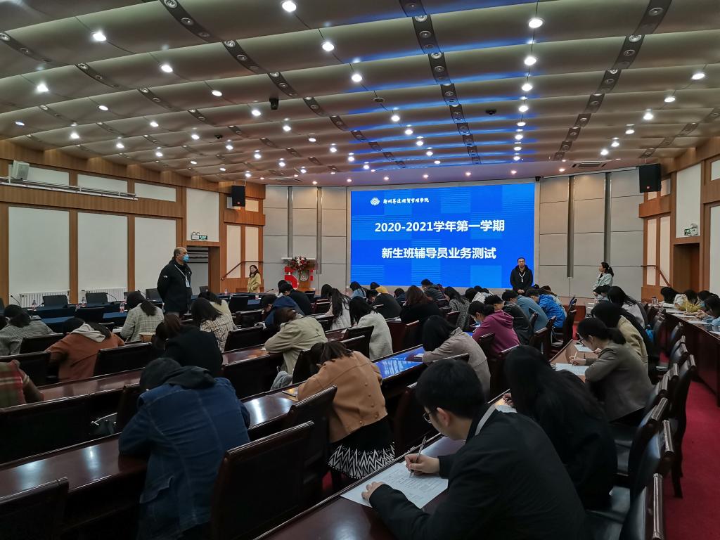 11月5日上午,我校在国际会议厅举行了2020级新生班辅导员业务测试,本次测试由学务处、人事处共同组织。