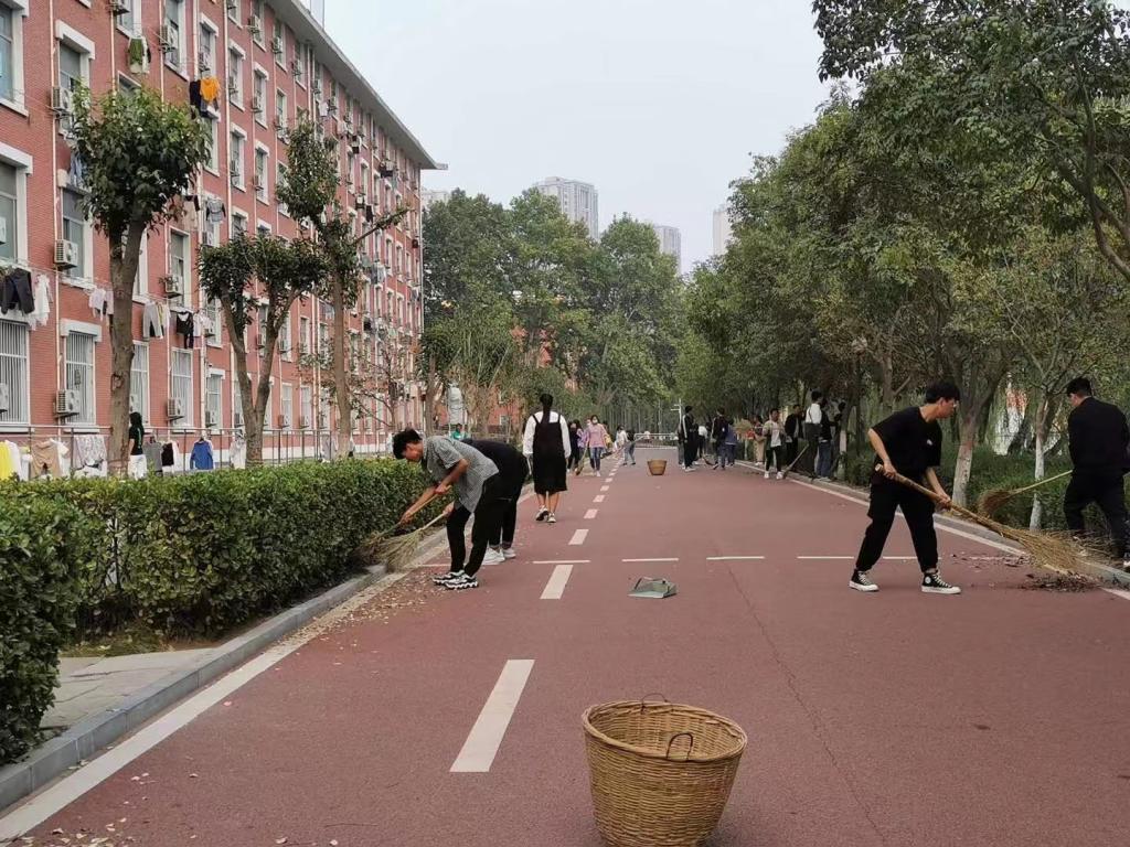 仪式结束后,师生代表以划分包干区域的方式,在校园参加了现场劳动实践活动。他们认真清扫每条道路上的落叶,保持每一处公共场所空间的整洁。