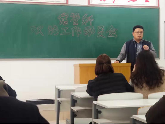 10月19日下午,宿管科在时金楼414室召开2021年新生入学时段 “双防”工作动员会,会议由宿管科长张弛主持,宿管科全体区长和楼长参加了会议。