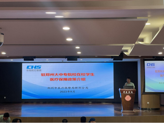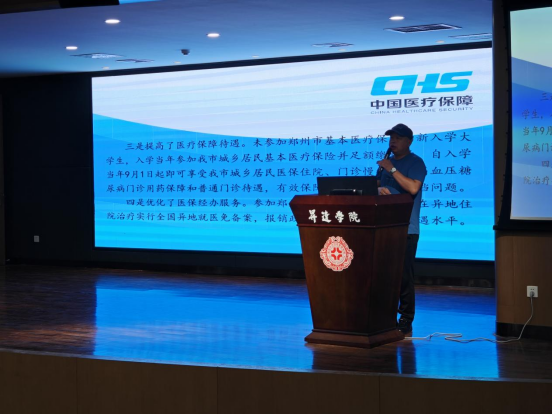 新郑市社保局待遇保障科科长唐春介绍了2023年度在郑州市参加医疗保险的政策优惠,解答了大学生医保的常见问题,为我校对2023至2024学年“新生入学季”参保缴费工作全面梳理,进一步完善实施方案,优化落实举措,建立了高质长效的常态化工作机制。