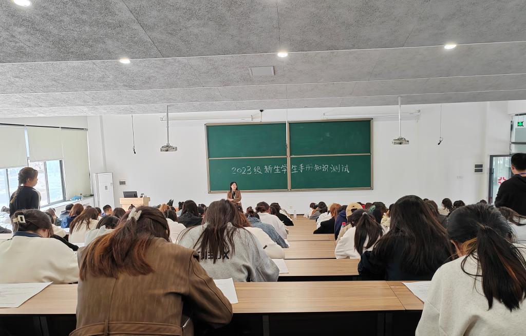 为强化校规校纪教育,了解新生入学教育以来学习掌握《学生手册》情况,学务处于10月11日中午,在教学3号楼107室、4号楼118室举行了新生应知应会管理制度学习测试,考试为闭卷形式,参加测试的240名学生是随机在全校新生中抽取的,涵盖了本专科及专升本新生。