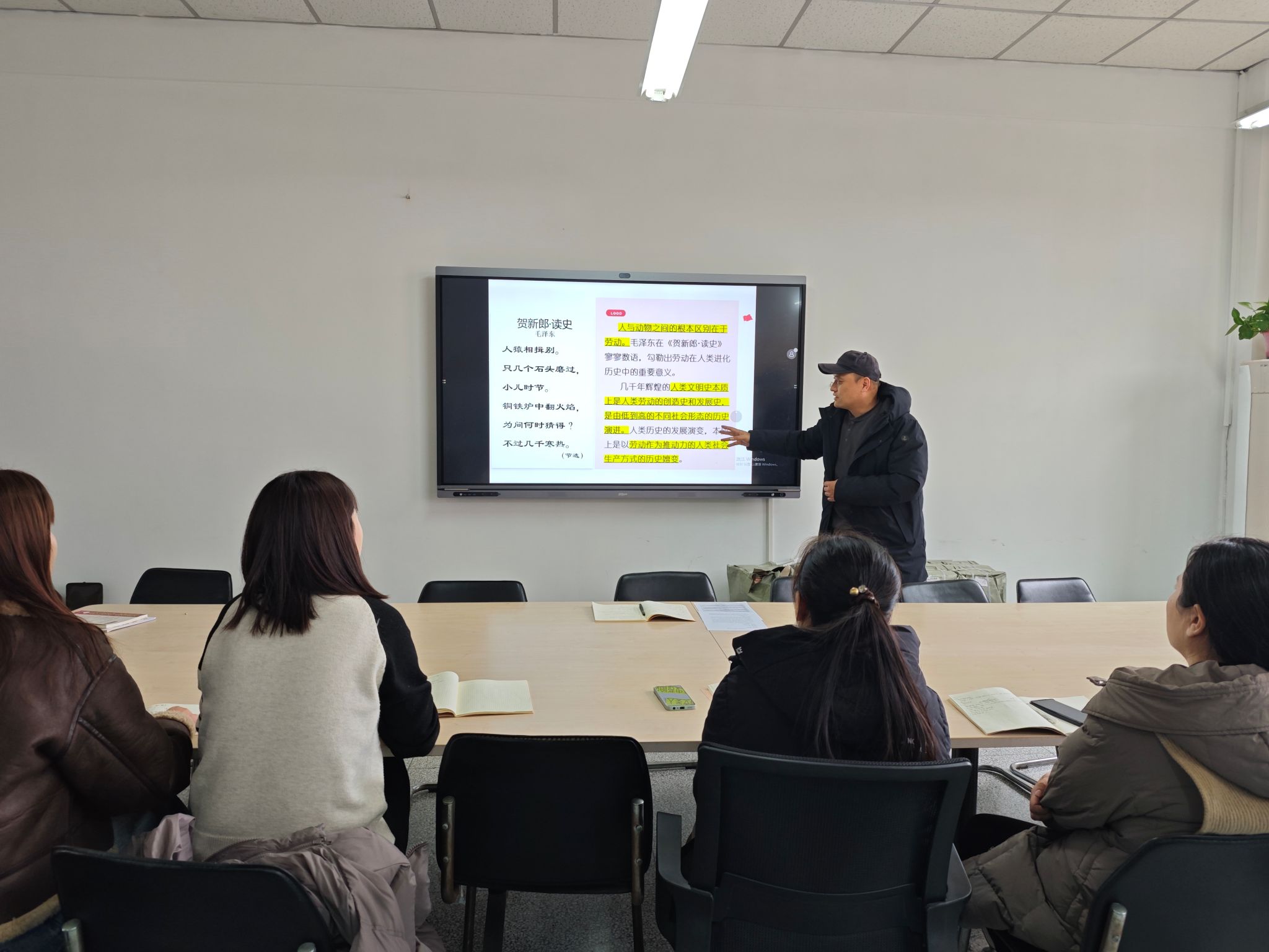 会上,孙鹏老师首先回顾了上学期《劳动通论》课程改革取得的成绩,分析了仍需持续推进的事宜,对本学期工作做出具体部署,通过说课演示,要求全体教师贯彻落实“236教学模式”,按照BOPPPS教学模型组织教学活动,以学生为中心,严格执行教学任务,做好课程设计,突出课程内容的高阶性、创新性和挑战度,提升学生课堂参与度与获得感,实时做好课后反思,不断提升教学能力和教学水平。