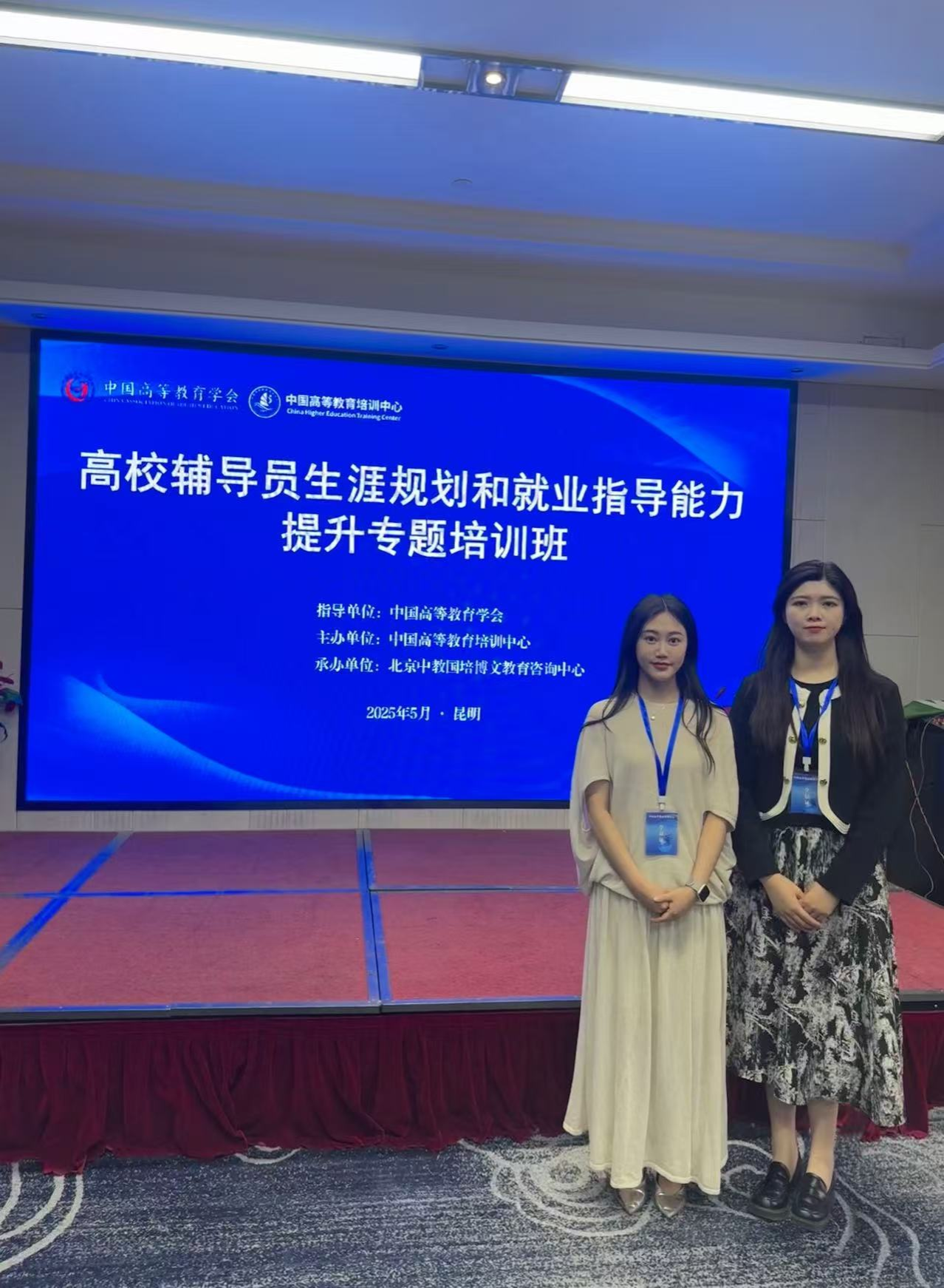 为进一步加强我校辅导员队伍的专业化建设,提升辅导员队伍在生涯规划和学生就业指导领域的理论素养与实践能力,2025年5月9日-12日,由中国高等教育培训中心举办的“高校辅导员生涯规划和就业指导能力提升专题培训班”在云南昆明召开。我校学务处思政科温馨、会计学院辅导员孟丽君参加了此次培训。