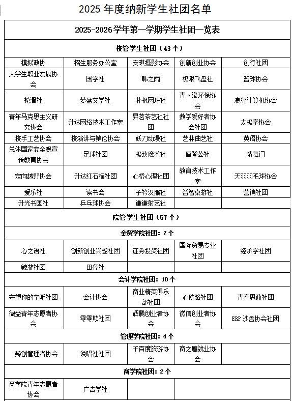 纳新的团学组织,是指经过校团委审核成立并注册备案的校、院团学组织(名单见附件1)。