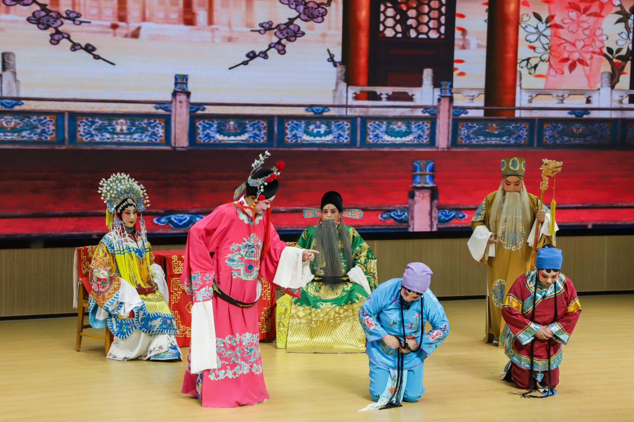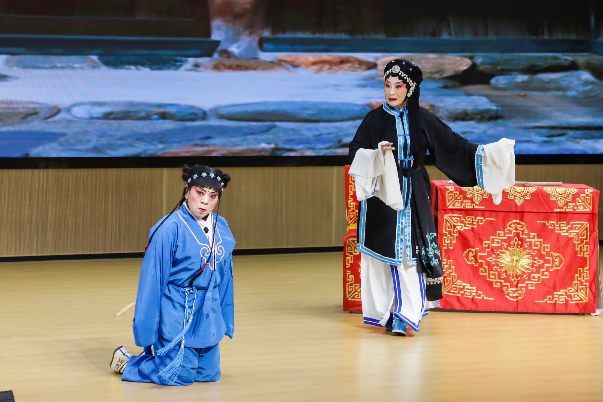本次交流活动展演的《三娘教子》是大平调传统经典剧目,又名《双官诰》《忠孝节义》《机房训》,主要讲述了明代儒生薛广前往镇江营生,委托同乡人将五百两白金带回家,不料此人吞没钱财,伪造棺木,谎称薛广已死。薛广的妻妾张氏、刘氏先后改嫁,唯有三娘王春娥织布,与老仆薛保一起抚养刘氏所生之子倚哥。倚哥在学校中被同学嘲笑无母,负气归家,不听春娥教训。春娥怒断机头,以示决绝,后经薛保苦苦哀劝,母子和好如初。最终倚哥得中状元,薛广亦获军功而还,一家团聚。演出中,剧团演员们以高亢奔放的唱腔、刚劲有力的身段,将剧中人物的情感纠葛与道德坚守演绎得淋漓尽致。大平调独特的板腔体唱腔,让在场师生深刻领略了这一传统剧种的艺术魅力。当剧中三娘教育义子的经典桥段上演时,演员们声情并茂的表演让现场师生为之动容。