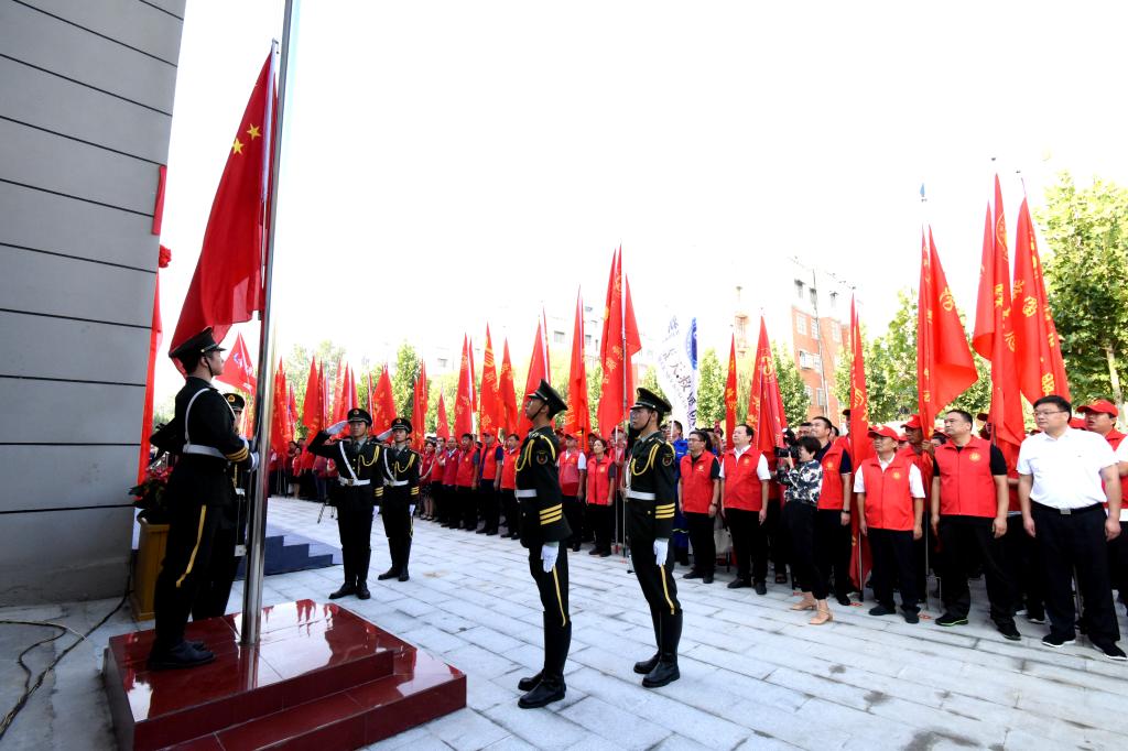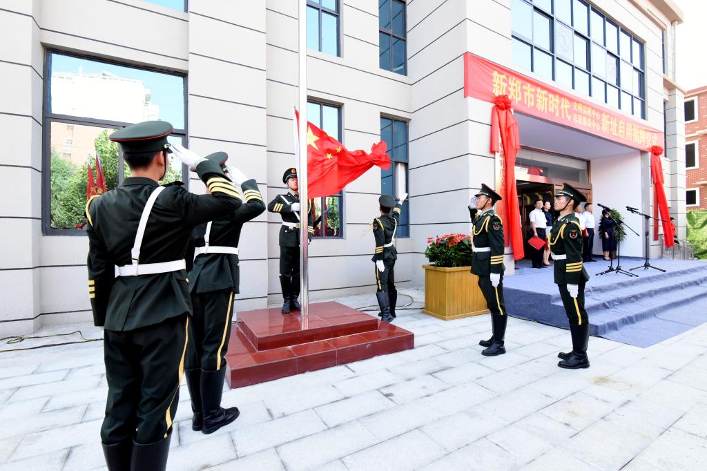 9月5日上午,新郑市举行新时代文明实践中心、志愿服务中心新址启用揭牌仪式。郑州市文明办副主任尚杰,新郑市委书记刘建武,新郑市委常委、宣传部长张慧娴等出席活动。我校国旗班7位同学,在宣传部宣传文化科科长赵建华老师的带领下参加了揭牌仪式。