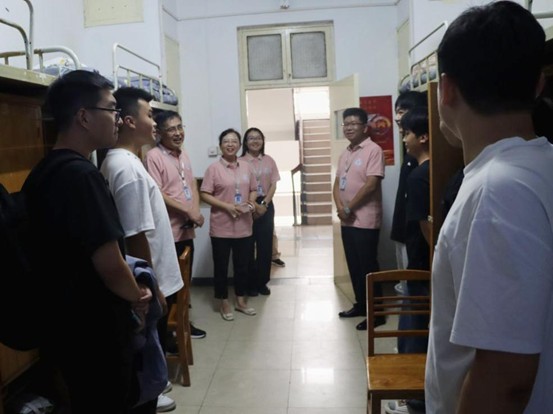 学院领导们深入新生宿舍,与刚刚入学的同学们及陪同前来的家长进行了温暖而深入的交流。领导们细致地询问了新生的入住安排和适应情况,对新生表达了热烈欢迎,并代表学校送上美好的祝愿。交流中,领导们不仅耐心倾听家长们的关切与期望,还认真听取了新生们对大学学习生活的初步设想和规划,鼓励大家早日融入校园环境、树立远大目标,珍惜时光、奋发向上,在未来的人生道路上不断突破自我、实现理想。