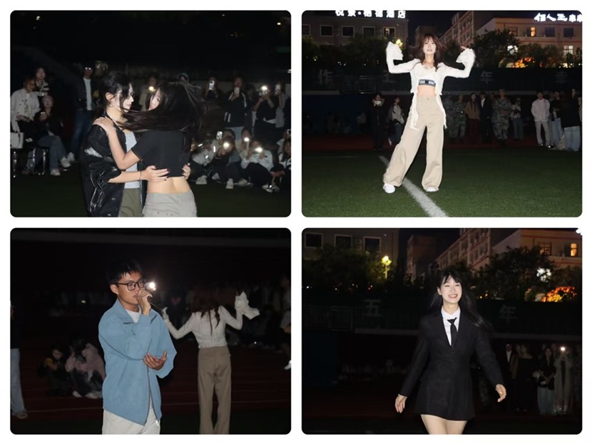 演出在现代舞队充满力量与自信的《我最红》中拉开序幕,利落的舞姿瞬间点燃全场热情。随后,民族舞队用优雅的舞姿以一首《长安三万里》惊艳亮相,衣袂飘飘间,将盛唐的恢宏与诗意展现得淋漓尽致。曹书豪献唱《鼻塞》,通过简单、活泼的设计成功传递心情;姜贝贝深情演唱《善变》,细腻的情感表达打动了在场的每一位观众;叶子航则以一首《我不是你的宋冬野》,唱出了青春的活力。舞台上,活力与创意无处不在。礼仪队的《Step on Up》走秀,将优雅与自信完美融合;杨可欣、陈新政的现代舞Solo,用身体语言诠释了个性与力量;杜启佳的现代舞串烧,动作行云流水,精彩不断;最后,刘家鑫和刘阳的《Troublemaker》更是默契十足,将现场气氛推向高潮。