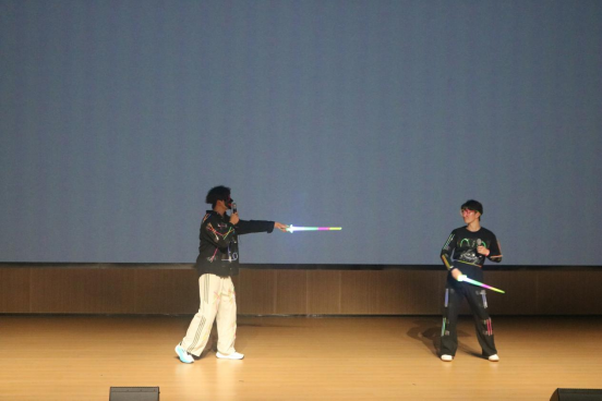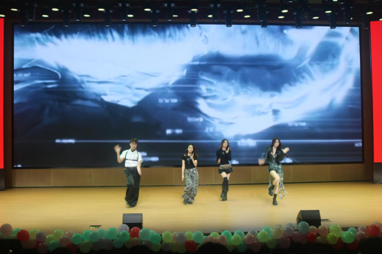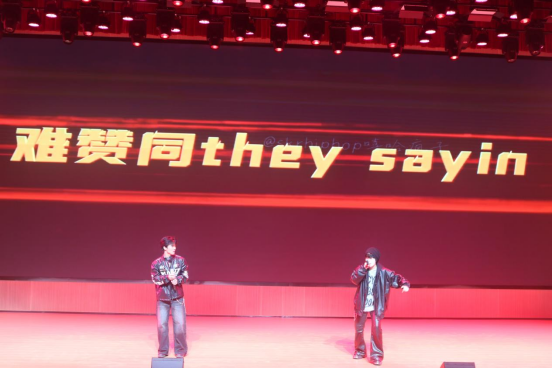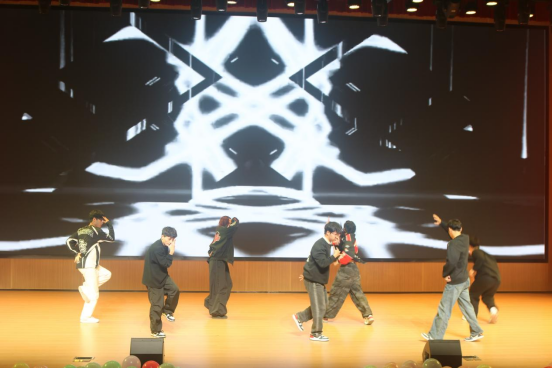说唱社杨帆、图玛热斯带来歌曲《等等》。他们用富有冲击力的说唱节奏与自信的舞台表现,完美诠释年轻一代的个性与态度,赢得台下阵阵欢呼。精舞门社团奉上了精心编排的舞蹈串烧《What is love +霹雳英雄》。他们将流行舞曲与复古霹雳元素巧妙融合,高难度的动作与整齐划一的队形,将晚会推向一个小高潮,现场掌声雷动。