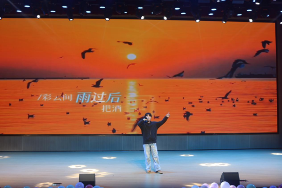 在热烈的氛围中,刘家和同学深情献唱歌曲《轻舟》。其悠扬的歌声如同轻舟划过心湖,寄托新生对崭新大学生活的憧憬与遐想。
