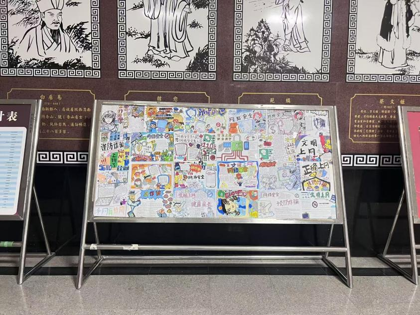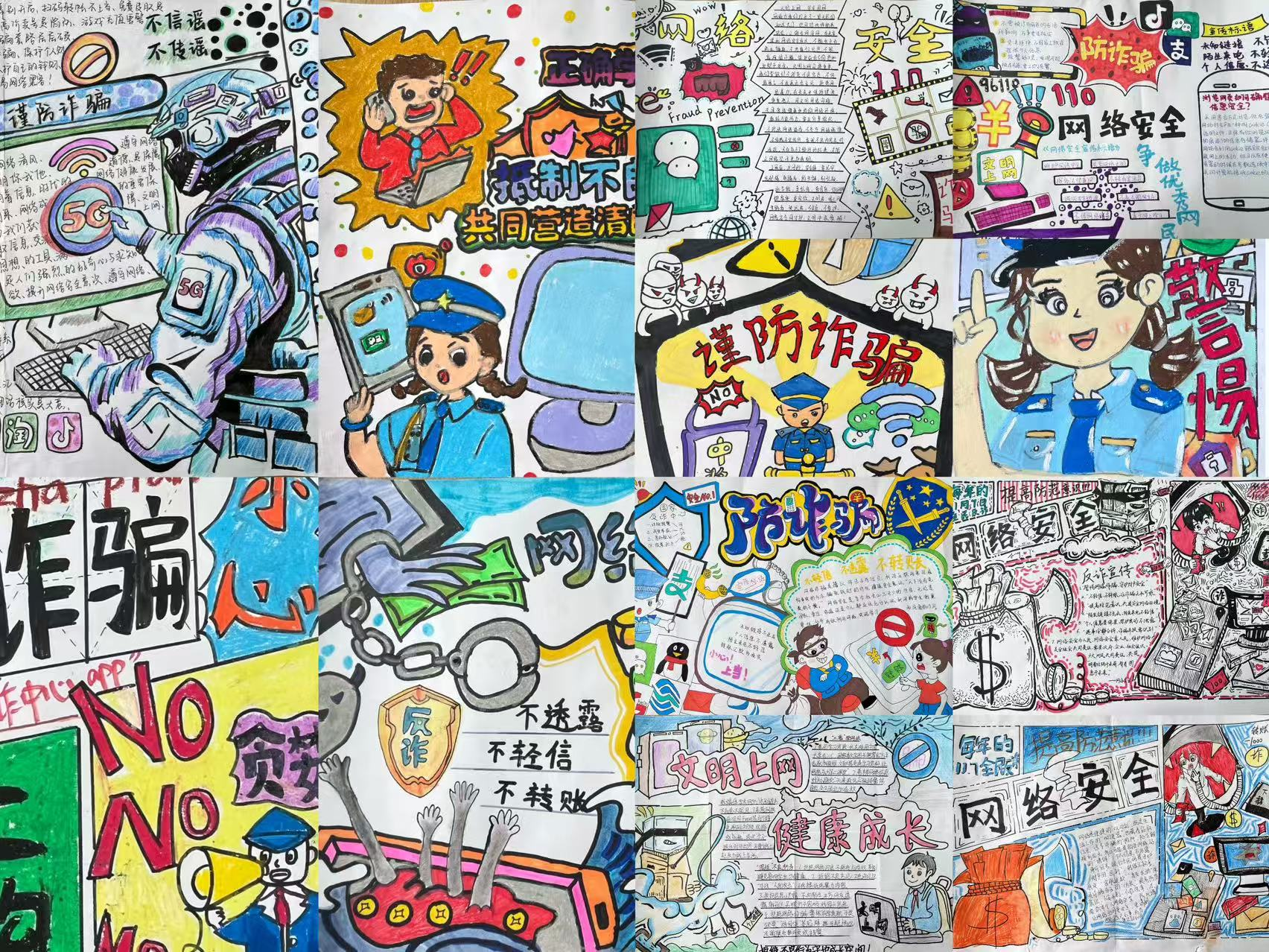 自比赛启动以来,体育学院各年级学生积极响应、踊跃参与,充分发挥想象力与创造力,将网络安全知识、文明上网准则与艺术表达相结合。同学们围绕“抵制网络谣言”“远离网络诈骗”“拒绝网络暴力”“合理规划上网时间” 等核心主题,通过精巧的版面设计、生动的插画图案、精炼的文字表述,将抽象的网络安全理念转化为直观可感的视觉作品。有的作品以鲜明的色彩对比警示网络风险,用漫画形式揭露网络诈骗的常见手段;有的作品以清新的笔触倡导文明上网礼仪,呼吁同学们珍惜网络空间清朗环境;还有的作品结合体育专业特色,将运动精神与网络文明理念相融,传递 “阳光上网、健康成长” 的正能量。