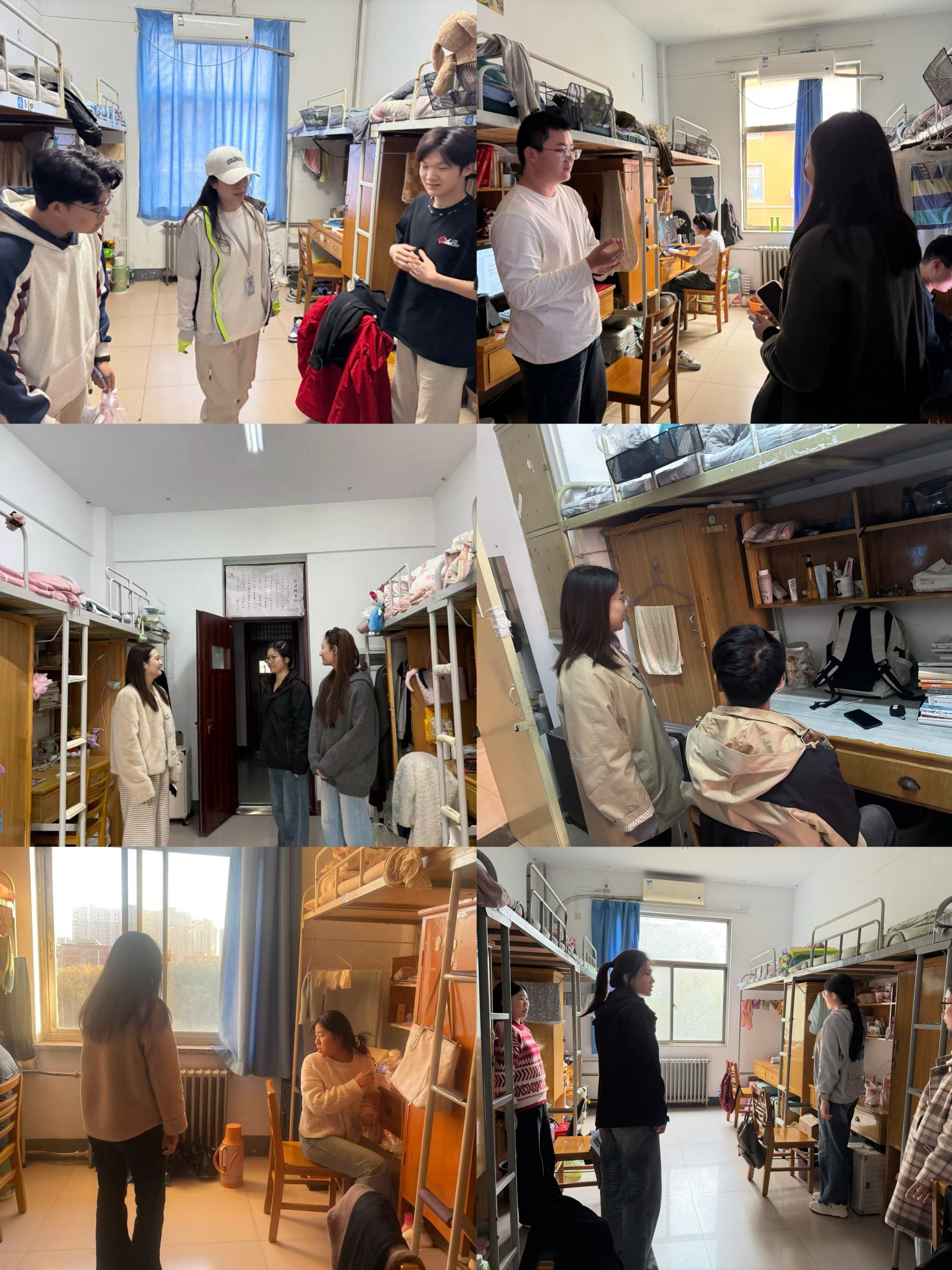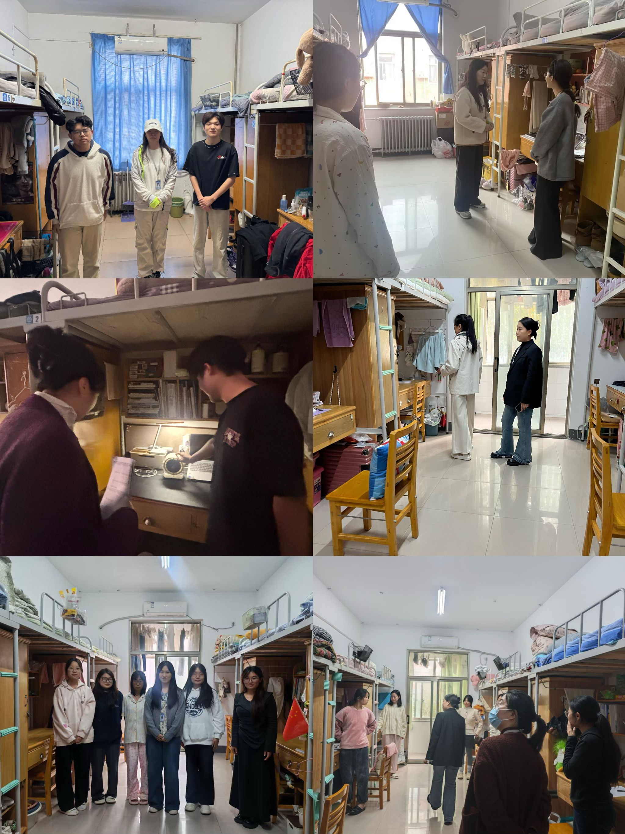活动中,辅导员们走进每一间宿舍,围绕文明礼貌月活动要求,向学生详细讲解活动的重要意义与具体举措。针对宿舍文明建设,辅导员重点对照“文明宿舍” 标准开展检查与引导。在卫生方面,督促学生保持宿舍卫生整洁,物品摆放整齐,垃圾及时入桶清理,确保地板洁净、室内空气流通;在安全方面,着重强调不抽烟、不酗酒,严禁私接电源、乱拉电线,禁用违规电器,不储存易燃易爆物品;在纪律方面,倡导学生维护宿舍公共环境,按时作息,每晚11:00前熄灯息声,共同营造良好睡眠环境。同时,辅导员还结合文明礼貌月活动中关于重点区域督导检查的要求,对宿舍区域进行自纠自查,筛选排查重点宿舍,对发现的问题登记造册,结合学情实施 “一生一策”,确保整改措施落实到位。
