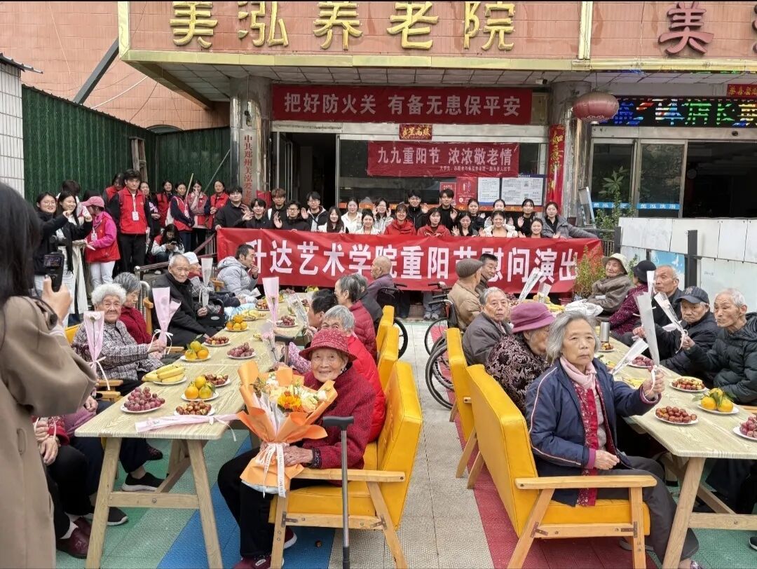 岁岁重阳,今又重阳。为弘扬中华民族尊老、敬老、爱老、助老的优良传统,丰富养老院老人们的精神文化生活,同时引导青年学子在社会实践中增强服务意识、担当社会责任,10月29日上午,艺术学院组织青年志愿者协会及艺术社团学生代表,在带队教师的陪同下,走进郑州市中原区汝河路美泓养老院,开展“重阳敬耆,暖沁颐园”主题慰问演出活动,为老人们送去节日的温暖与祝福。