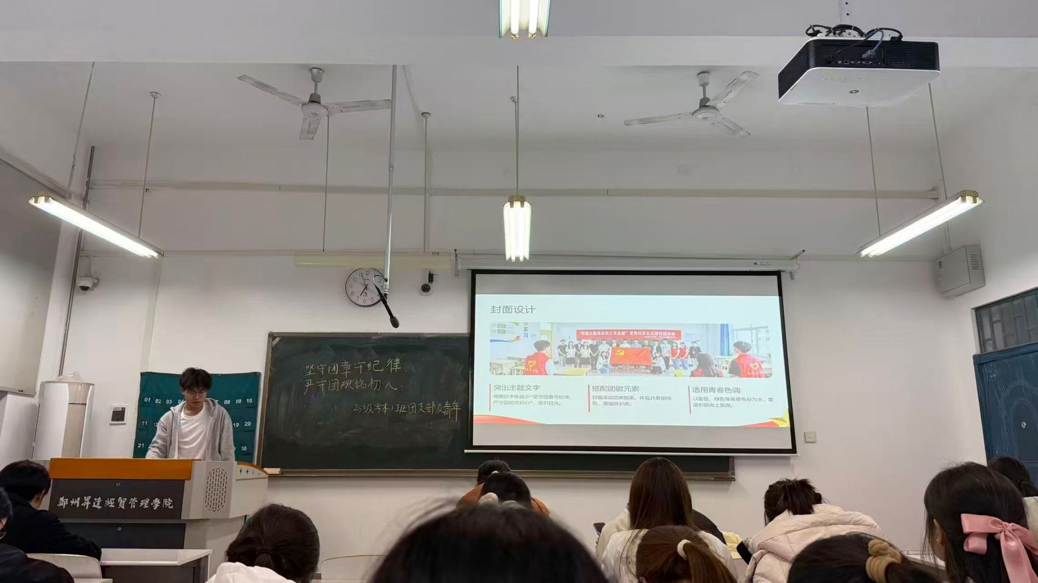 着力深化团员纪律意识,筑牢青年信仰根基,文法学院2025级学前教育本科1 班团支部于11月12日在道镕楼 204 教室开展了以“坚守团章守纪律,严守团规铭初心”为主题的团日活动,2025级学前教育本科1班全体同学参与,团支书郭恩霖主持此次活动。
