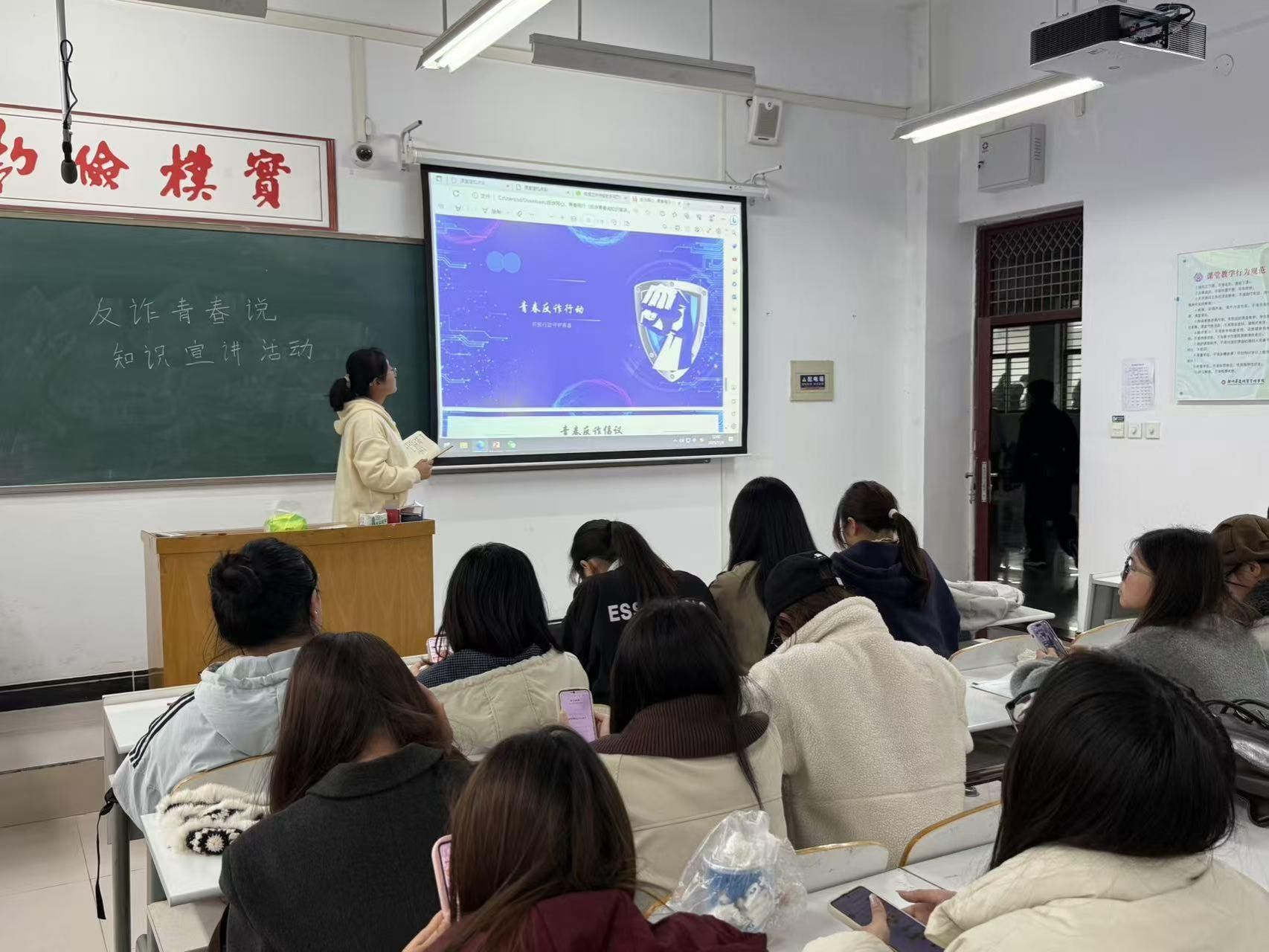 为进一步增强青少年防范诈骗意识,提升自我保护能力,维护校园安全稳定,11月6日,金融贸易学院25级国本二班在时金楼219教室组织举办了“反诈同心,青春同行”知识宣讲活动。活动由班级辅导员刘宗明老师指导,25级国本二班全体学生参加,主讲人为团支书王旌瑜。
