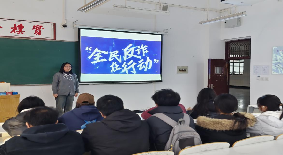 活动前期,各团支部广泛收集最新反诈政策文件、校园真实诈骗案例,制作图文视频学习资料与知识竞答题库,部分班级还面向学生征集反诈主题海报、手抄报、短视频等创意作品,为活动开展奠定坚实基础。