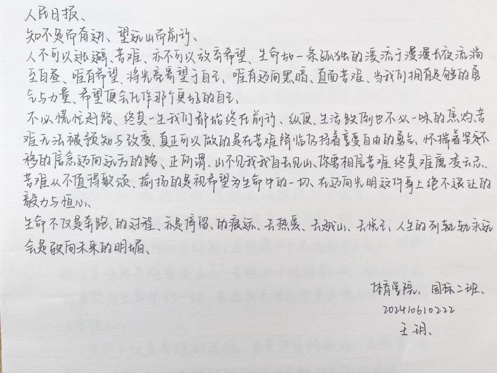 此次“文墨飘香”校园书法大赛,不仅为热爱书法的学子提供了交流展示的平台,更以笔墨为媒,让师生在书写中感受中华传统文化的魅力,进一步营造了崇尚文化、陶冶情操的校园氛围。下一步,体育学院将继续深耕“体育+文化”育人模式,开展更多形式多样的文化活动,助力学子全面发展、成长成才。