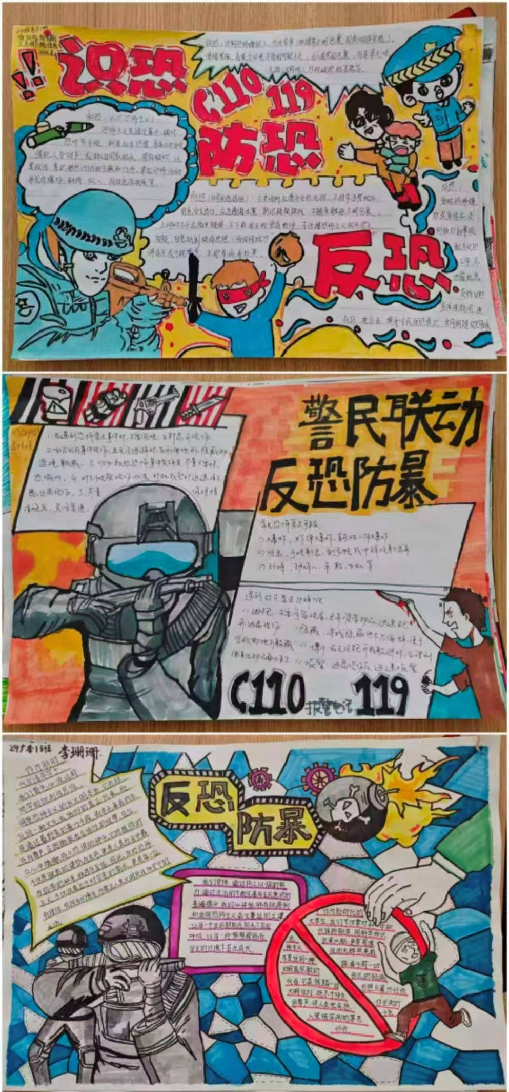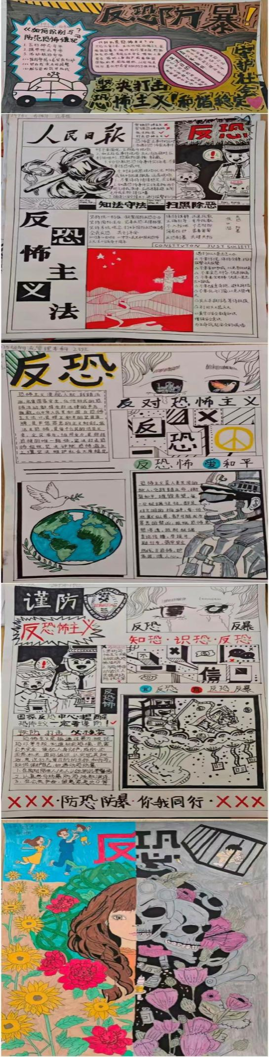 此次活动以手抄报创作为重要载体,将知识学习转化为主动表达与艺术创作,不仅提升了学生的安全素养与实操能力,更在校园内营造了“人人关注反恐,主动守护安全”的浓厚氛围,为构建平安、和谐的校园环境注入了生动而坚实的青春力量。