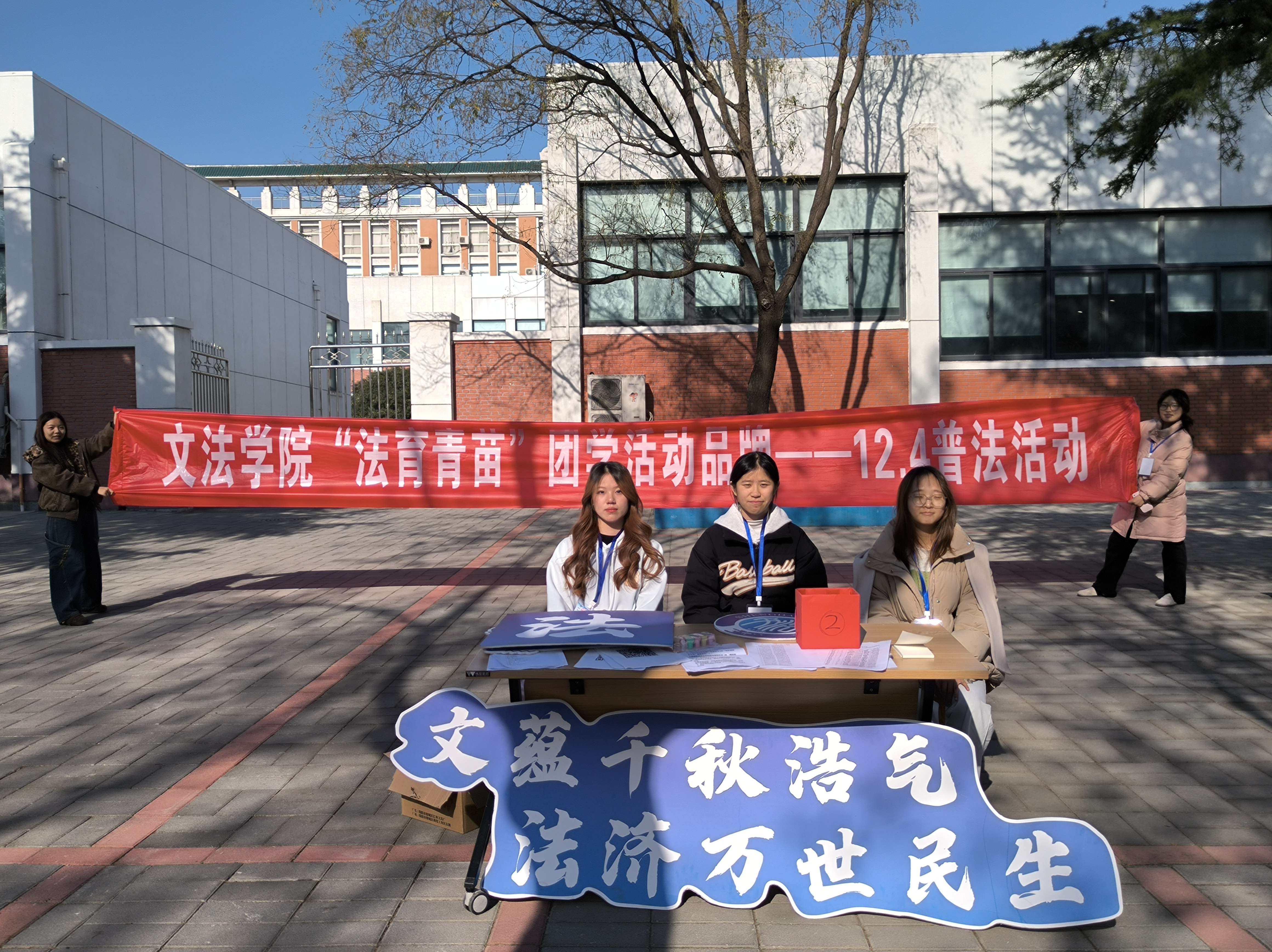 为深入学习法治思想,提升青年学生法治素养,由文法学院团委学生会主办、学习部承办的“法育青苗”团学活动品牌之“12·4”普法活动于12月4日下午在教学1号楼南侧小广场成功举办。