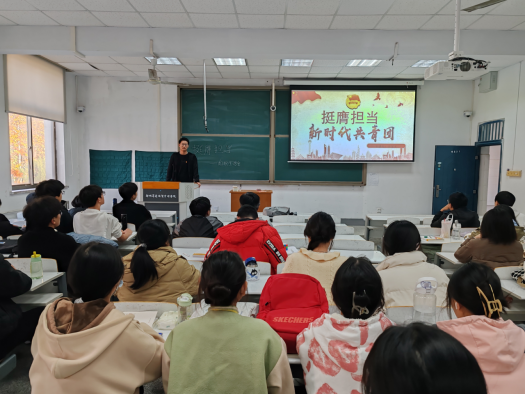 首先,团总支副书记王宝文同学介绍了“什么是挺膺担当”及“挺膺担当的重要性”,让大家对此有了一定的了解。随后王宝文同学就挺膺担当的内涵、挺膺担当的实践及挺膺担当的培养展开了论述,指出大家站在时代潮头应展现青春之态。最后,王宝文同学对本次活动进行总结,并表示希望大家做一个自信坚定、积极向上、勇于承担责任的新时代青年。