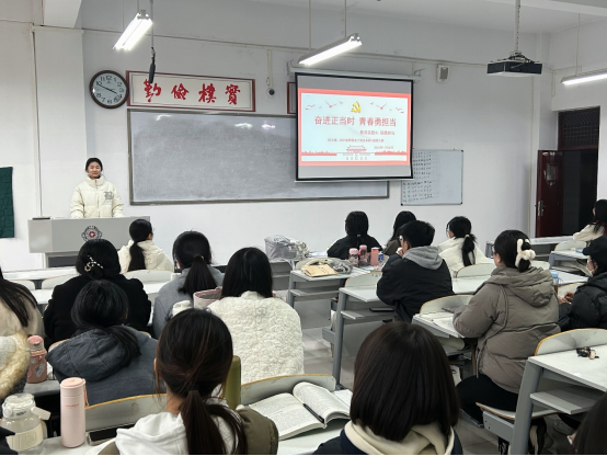 团支书通过PPT的形式,向本班同学进行讲解,她阐述了广大团员青年要树立共产主义远大理想,坚定中国特色社会主义共同理想,坚定听党话、跟党走的政治信念。要有责任有担当,青春才会闪光,同时团支书呼吁本班团员青年要与新时代同向同行、共同前进,把个人奋斗的“小目标”融入党和国家的“大蓝图”。