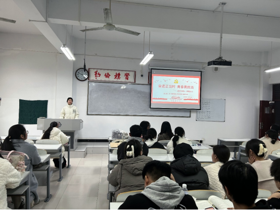 为充分激发广大团员青年的责任感和使命感,商学院2021级跨境电子商务本科1班团支部于2023年11月28日在道镕楼514教室展开了以“奋进正当时,青春勇担当”主题的教育活动。